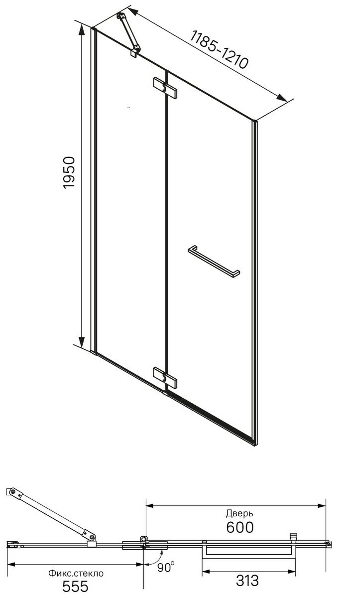 Душевая дверь распашная IDDIS Slide глянцевый ал. проф., 120х195 SLI6CH2i69