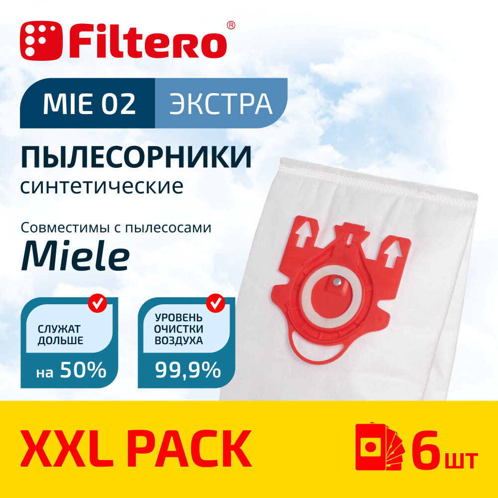 Купить Мешки-пылесборники Filtero MIE 02 XXL Pack Экстра, для пылесосов Miele, синтетические, 6 штук