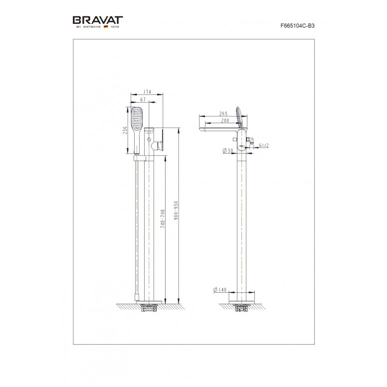 Смеситель отдельно стоящий для ванны с душем Bravat Gina F665104C-B3-ENG