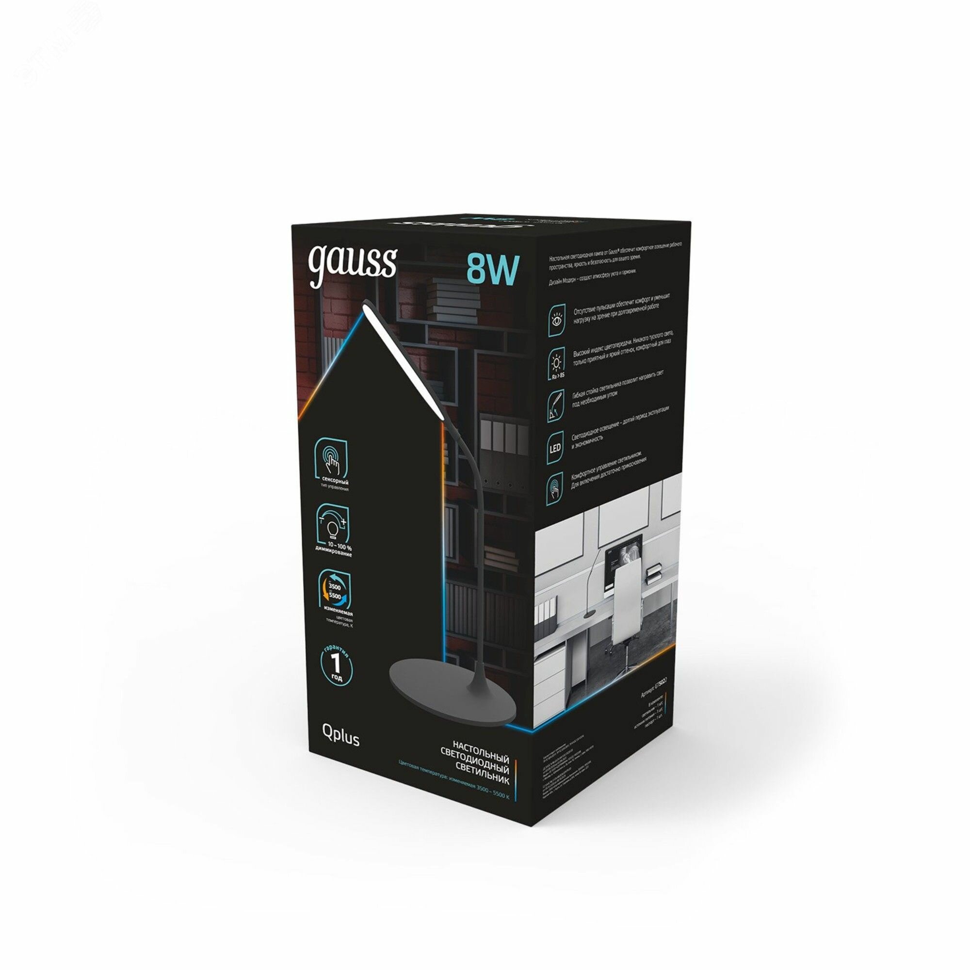 Светильник настольный Gauss Qplus модель GTL502 8W 500lm 3500-5500K 170-265V черный диммируемый LED 1/12