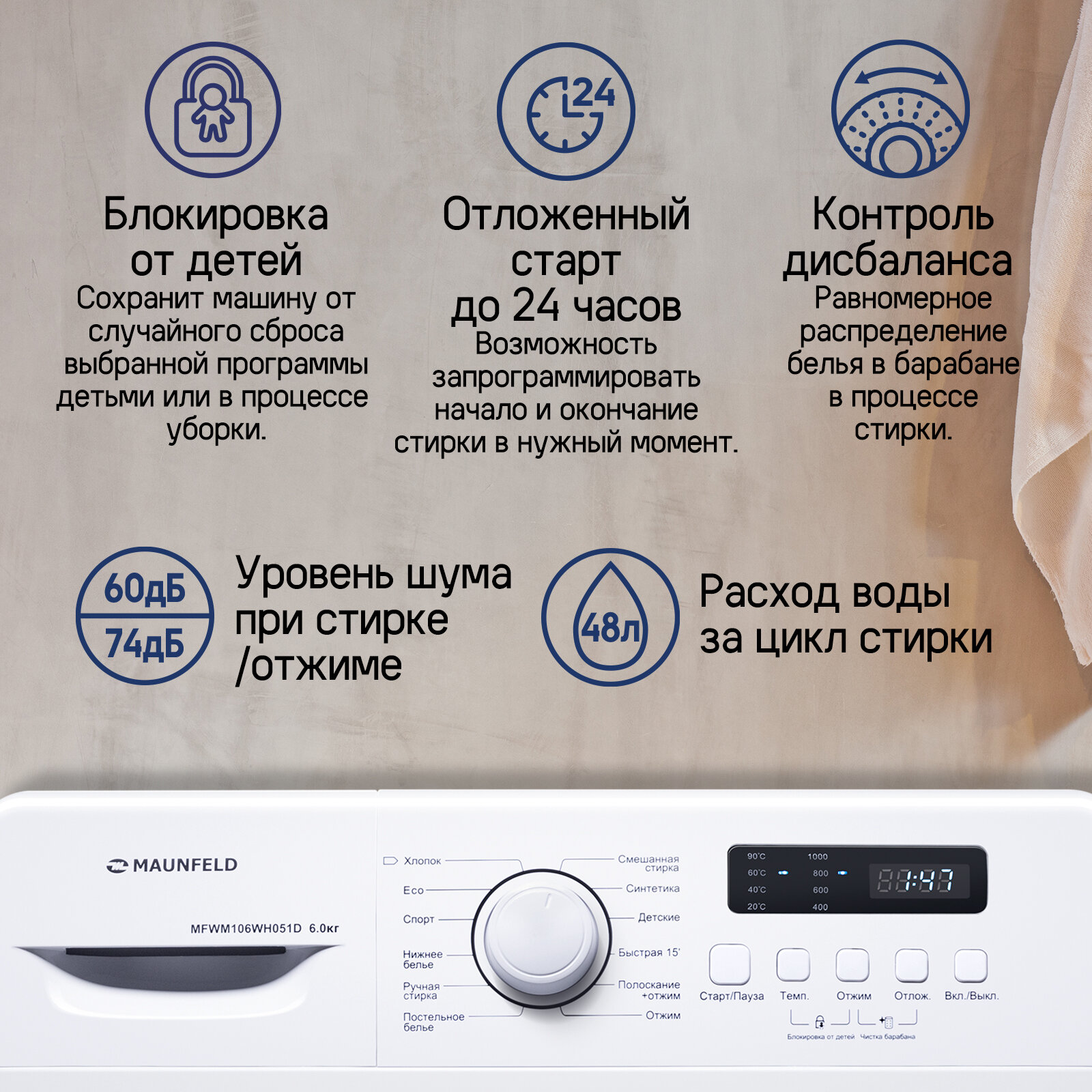 Стиральная машина Maunfeld MFWM106WH051D интересное: