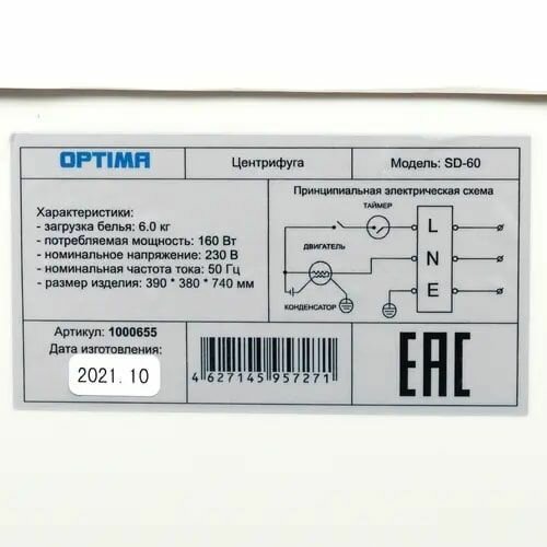 Центрифуга Optima SD-60, 6 кг, бак из пластика, 1350 об/мин, прозрачное окно на крышке, белая интересное: