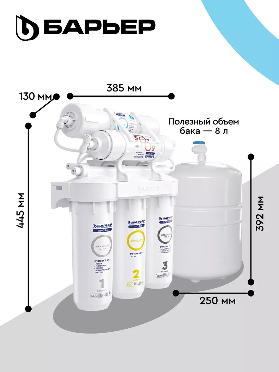Фильтр под мойку для очистки воды пятиступенчатый c технологией обратного осмоса БАРЬЕР профи Осмо 100, без крана интересное:
