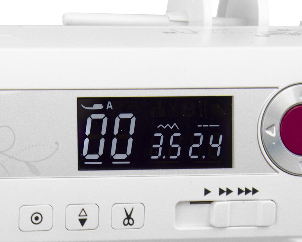 | Дополнительная информация | позволят сделать процесс шитья комфортным и приятным. Выбор строчек и управление шитьем происходят с помощью дисплея и навигационнных кнопок. Регулировка прижима лапки позволит работать как с легкими так и с тяжелыми материалами. В комплекте с машиной идет набор лапок (8 шт.) приставной столик и жесткий чехол. |