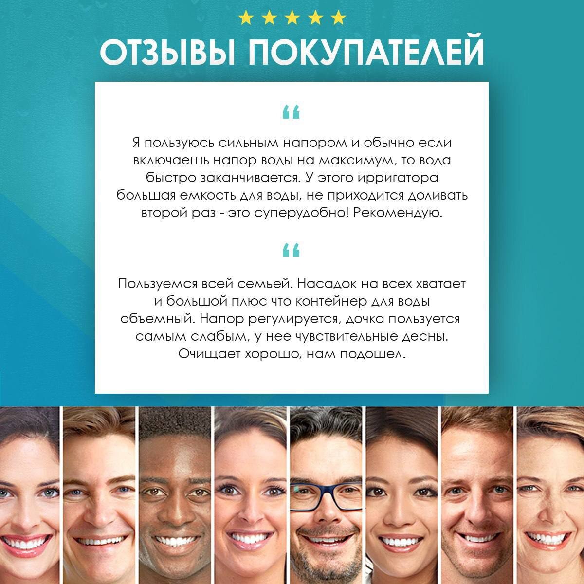 Здоровский иригаьор, очень удобно ,что пользоваться можно мужу и мне. Напор воды регулируется, есть много насадок и что мне важно есть чистка камня зубног