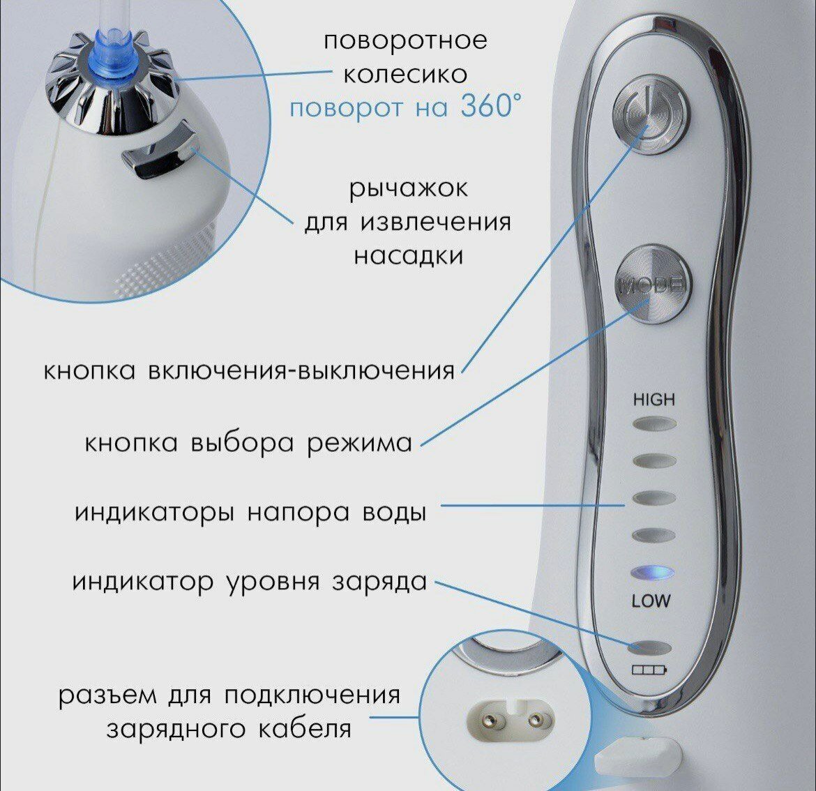 Портативный ирригатор H2ofloss / ирригатор для полости рта / для десен и брекетов интересное: