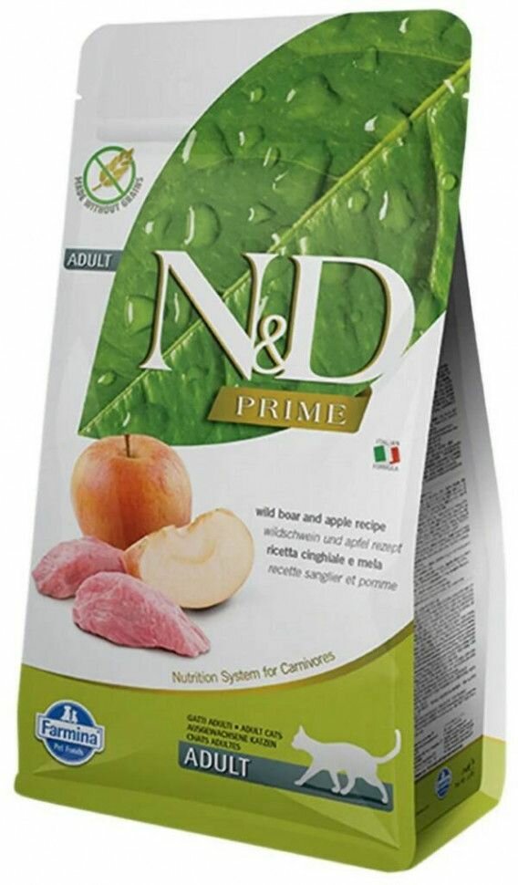 Farmina N&D Prime Cat Boar & Apple Adult сухой беззерновой корм для взрослых кошек с кабаном и яблоком - 1,5 кг