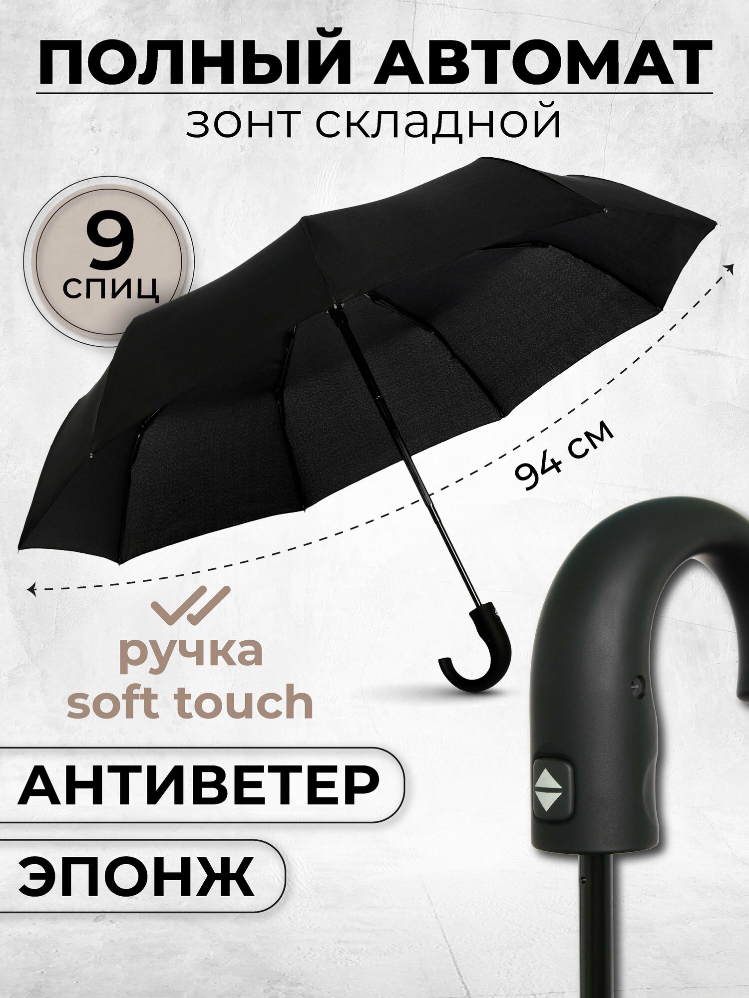 Зонт-шляпка Rainbrella, автомат, 3 сложения, купол 94 см., 9 спиц, система «антиветер», чехол в комплекте, черный интересное: