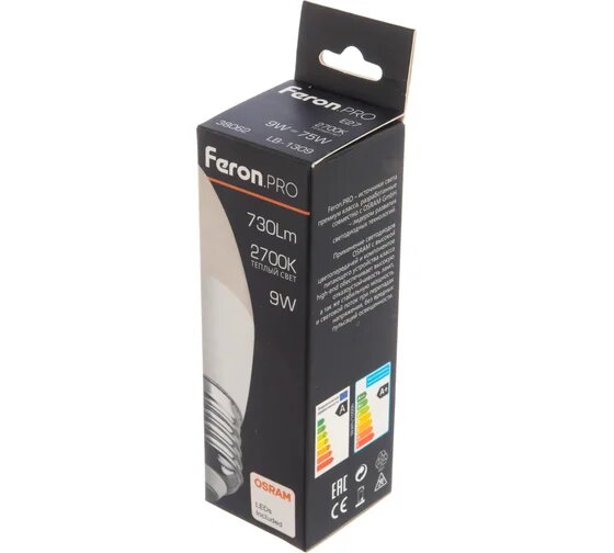 Лампа светодиодная . PRO LB-1309 Свеча E27 9W 2700K, FERON 38062 (1 шт.)
