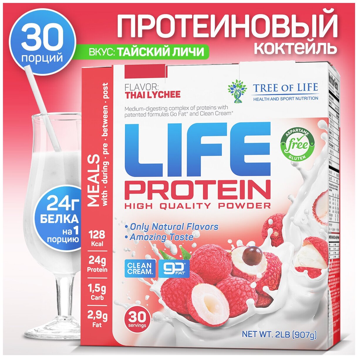 LIFE Protein 907 gr, 30 порции(й), тайская личи