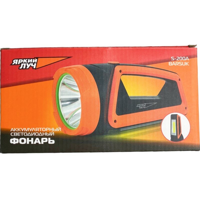Фонарь Яркий ЛУЧ S-200a Barsuk прожектор 200лм 2реж. +боковой COB 170лм 2реж, аккум. 2400mAh 4606400