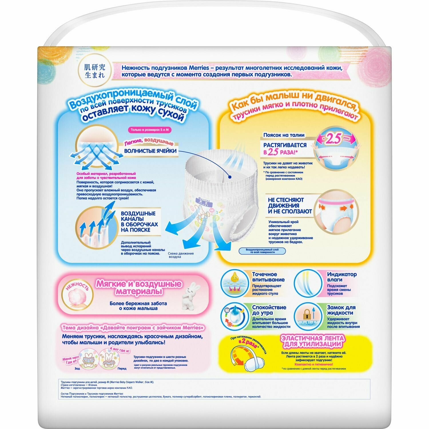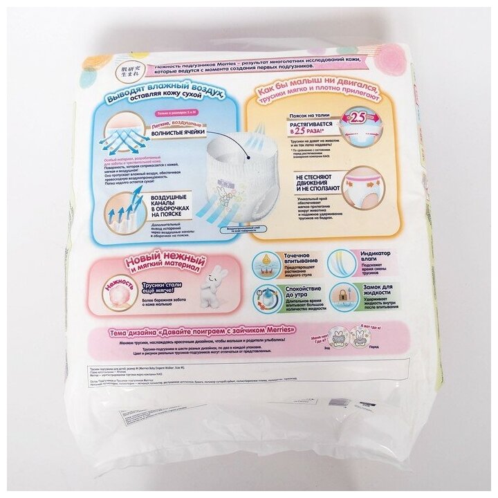 Трусики-подгузники Merries для детей размер M / 3 (6-11 кг), 58 шт, дышащие