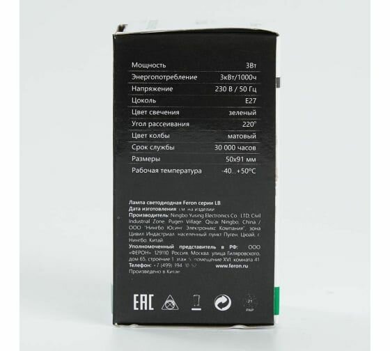 СохранитьЛампа светодиодная LB-375 E27 3W зеленый, FERON 25922 (1 шт.) интересное: