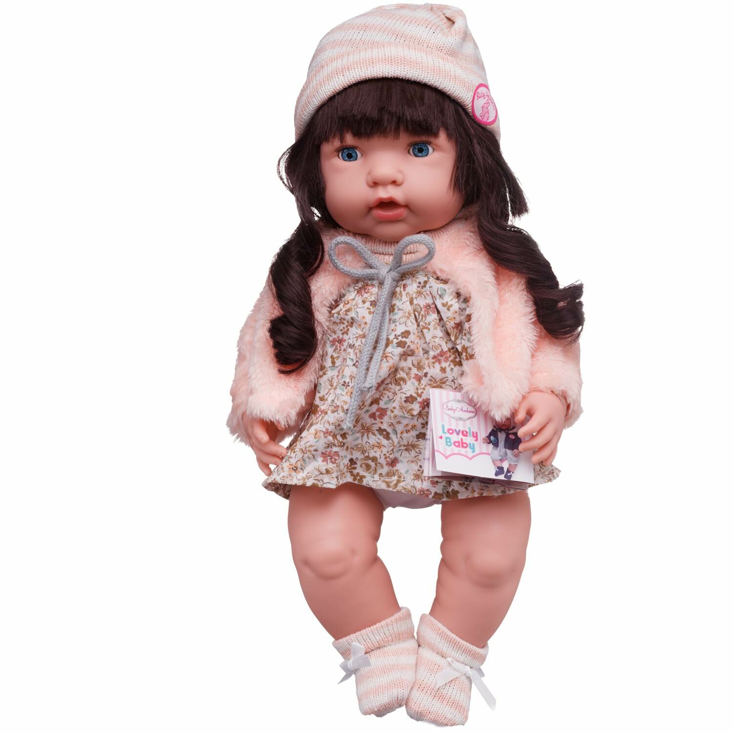 Пупс-кукла Baby Ardana, в платье и розовой шубке, в наборе с аксессуарами, в коробке, 40см