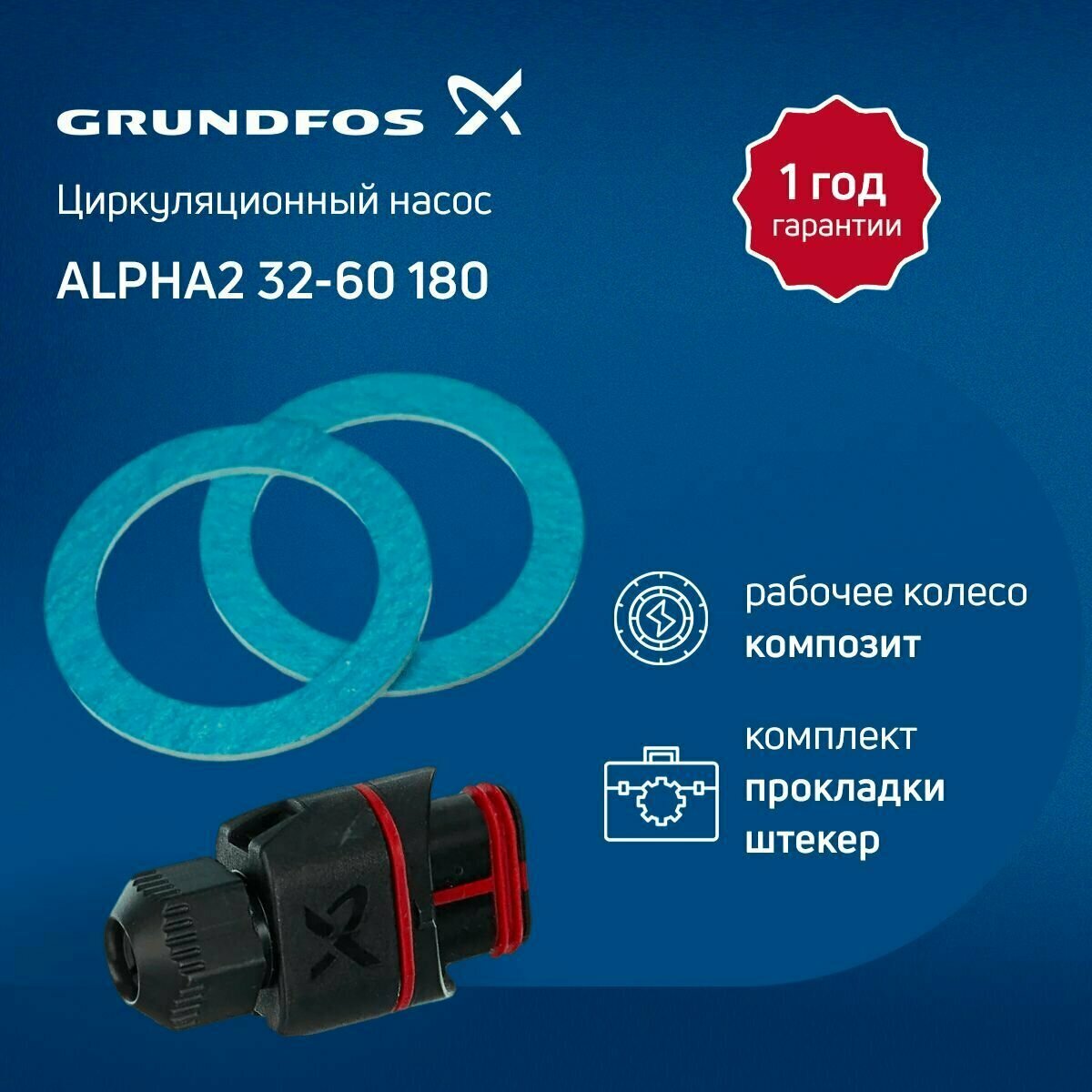 Насос циркуляционный Grundfos ALPHA2 32-60 180, L 180 мм, DN 25 мм, макс.напор 4 м 99411221