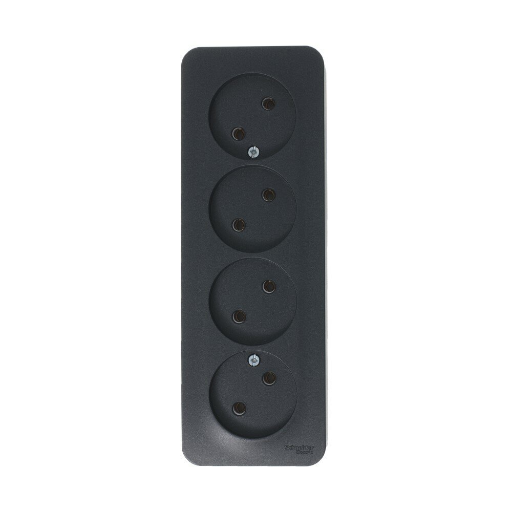 4шт. - Розетка BLANCA наружная четырехпостовая, без заземления, без шторок, с изолирующей пластиной, 16А, 250В, антрацит / Systeme Electric; арт. BLNRA000416; оригинал / - комплект 4шт