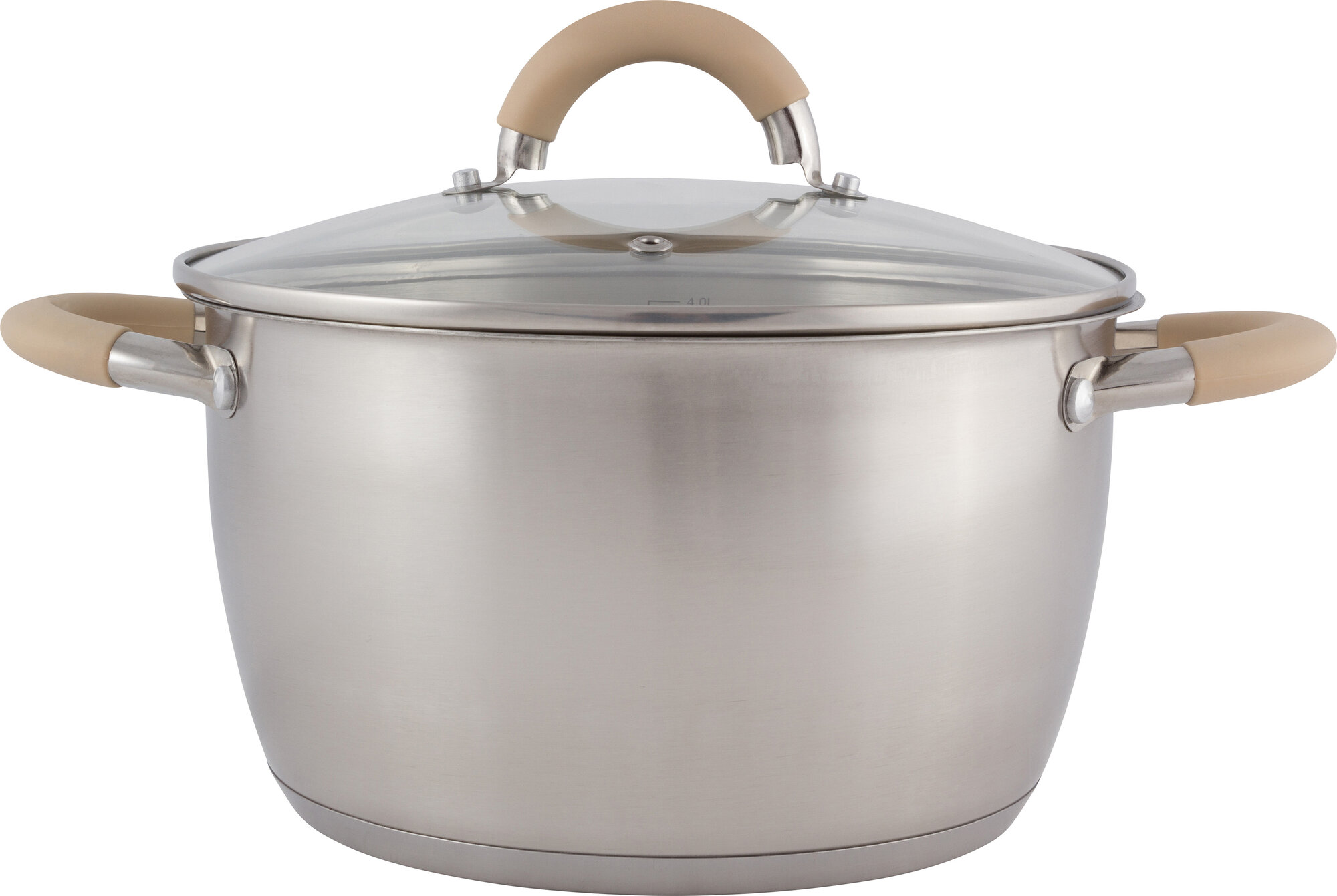Кастрюля Fortuna, объем 4,5 л, из нерж стали с крышкой, матовый корпус, ручки с силиконом