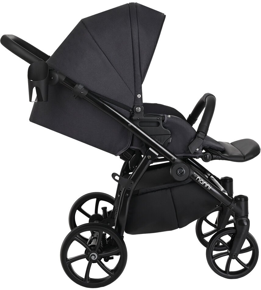 Коляска 3 в 1 Tutis Nanni 2023 Ткань/Кожа Черный+Кожа Черный
