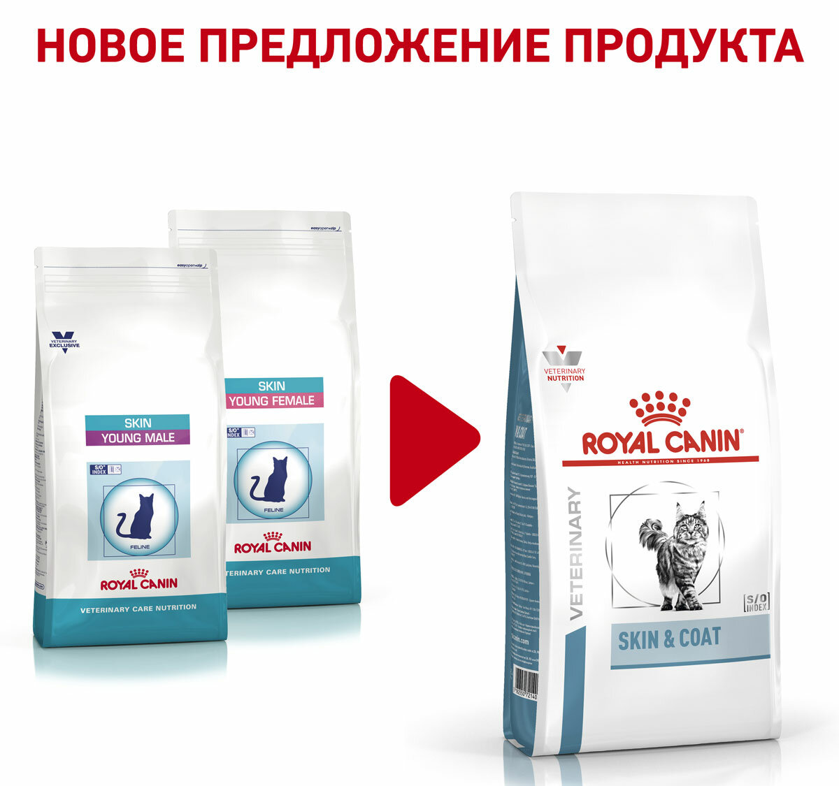 ROYAL CANIN SKIN & COAT для кастрированных котов и стерилизованных кошек с чувствительной кожей и шерстью (1,5 кг)