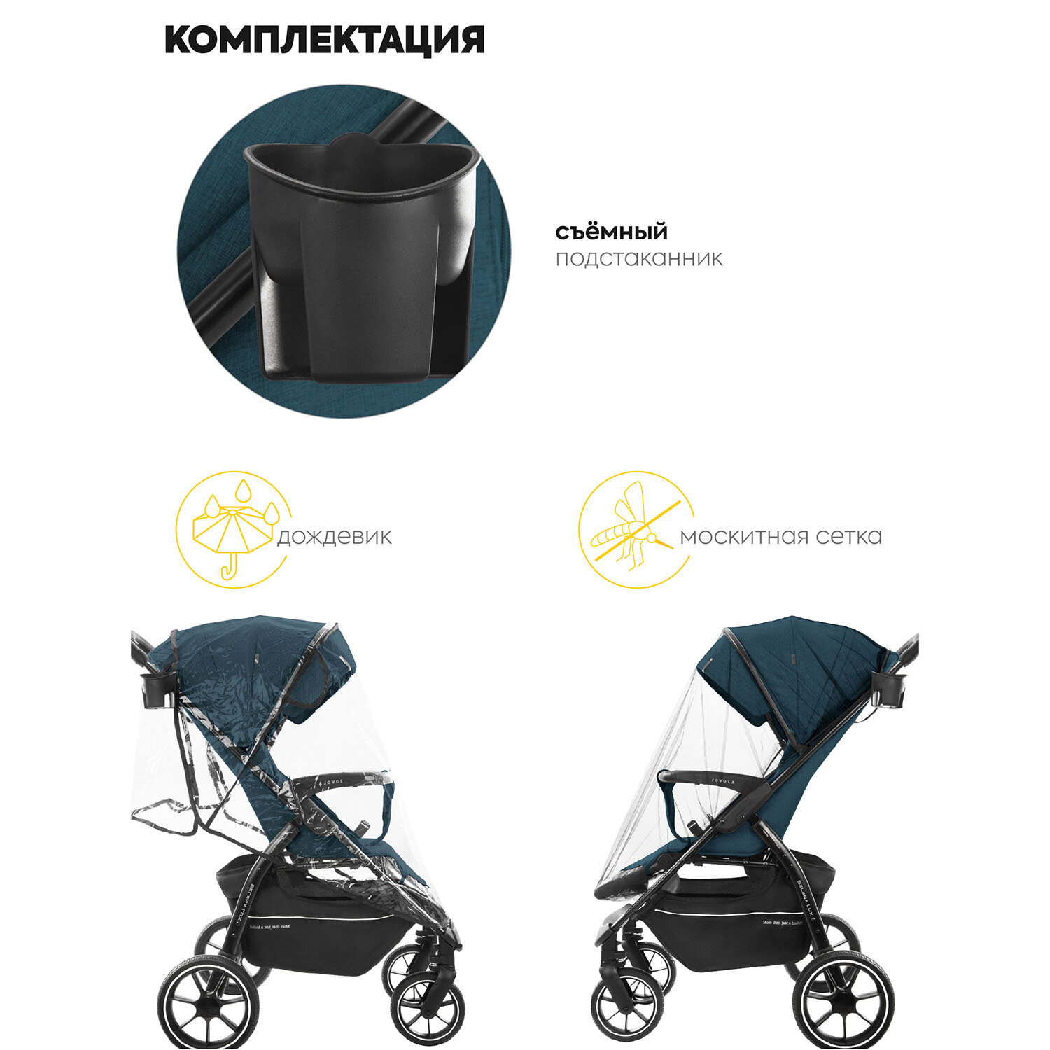 | Аксессуары в комплекте | антимоскитная сетка, бампер, дождевик, капюшон, накидка на ноги, подстаканник |