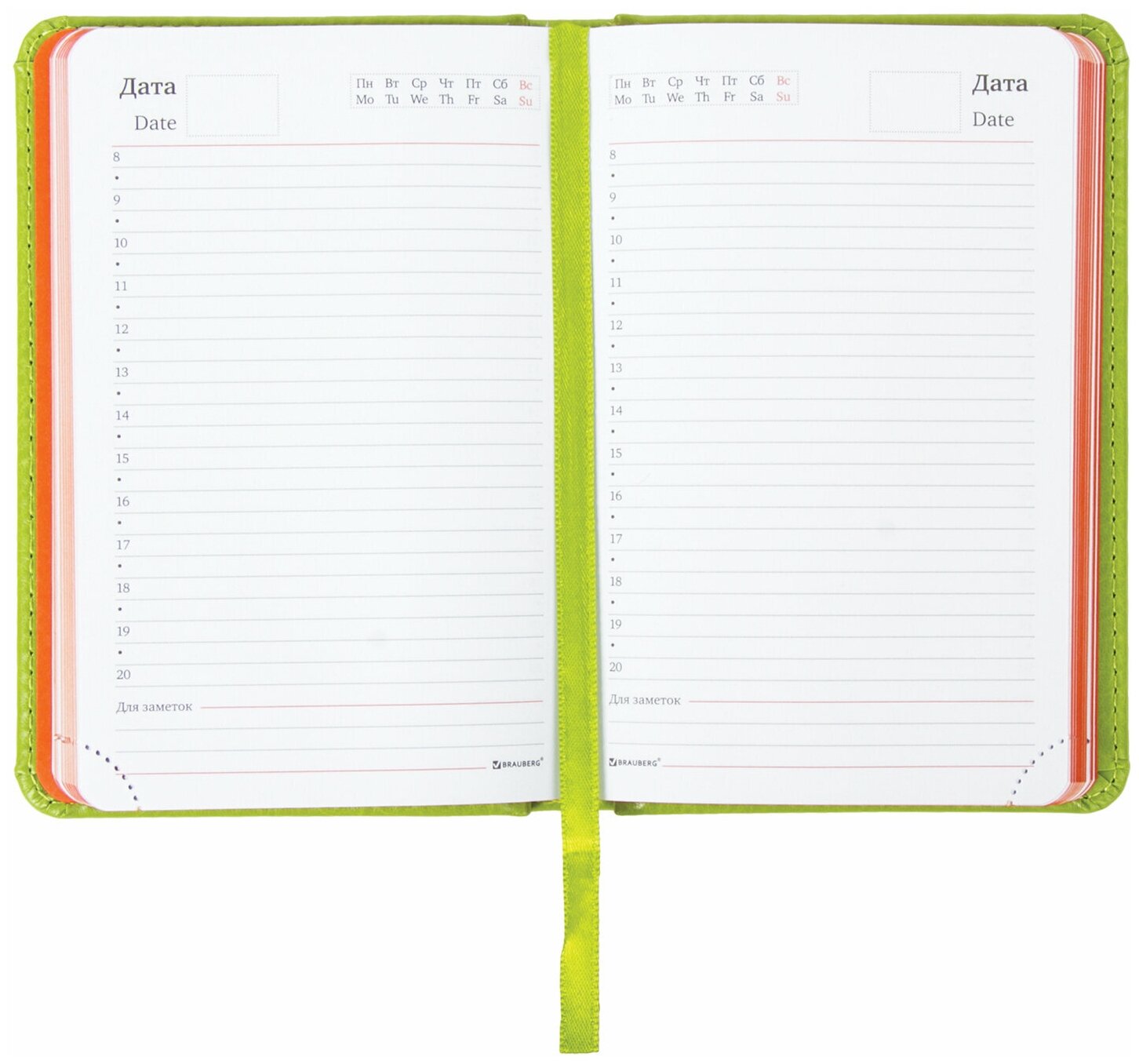 Квант продажи 1 ед. Ежедневник недатированный малый формат 100×150 мм А6 BRAUBERG «Rainbow» под кожу, 136 л., зеленый, 111689