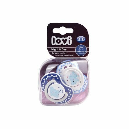 Lovi Пустышка динамическая силикон 3-6 мес Night&Day для мальчика, 2 шт