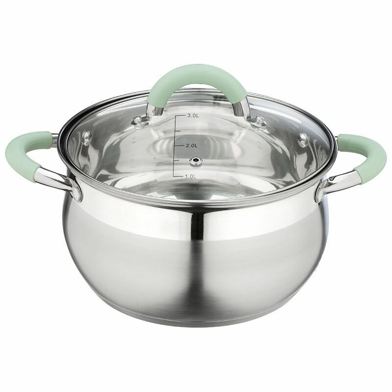 Кастрюля MENTOLO, 2,6 л, из нержавеющей стали с крышкой, ручки с силиконом