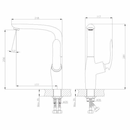 | Длина излива | 177 мм |
