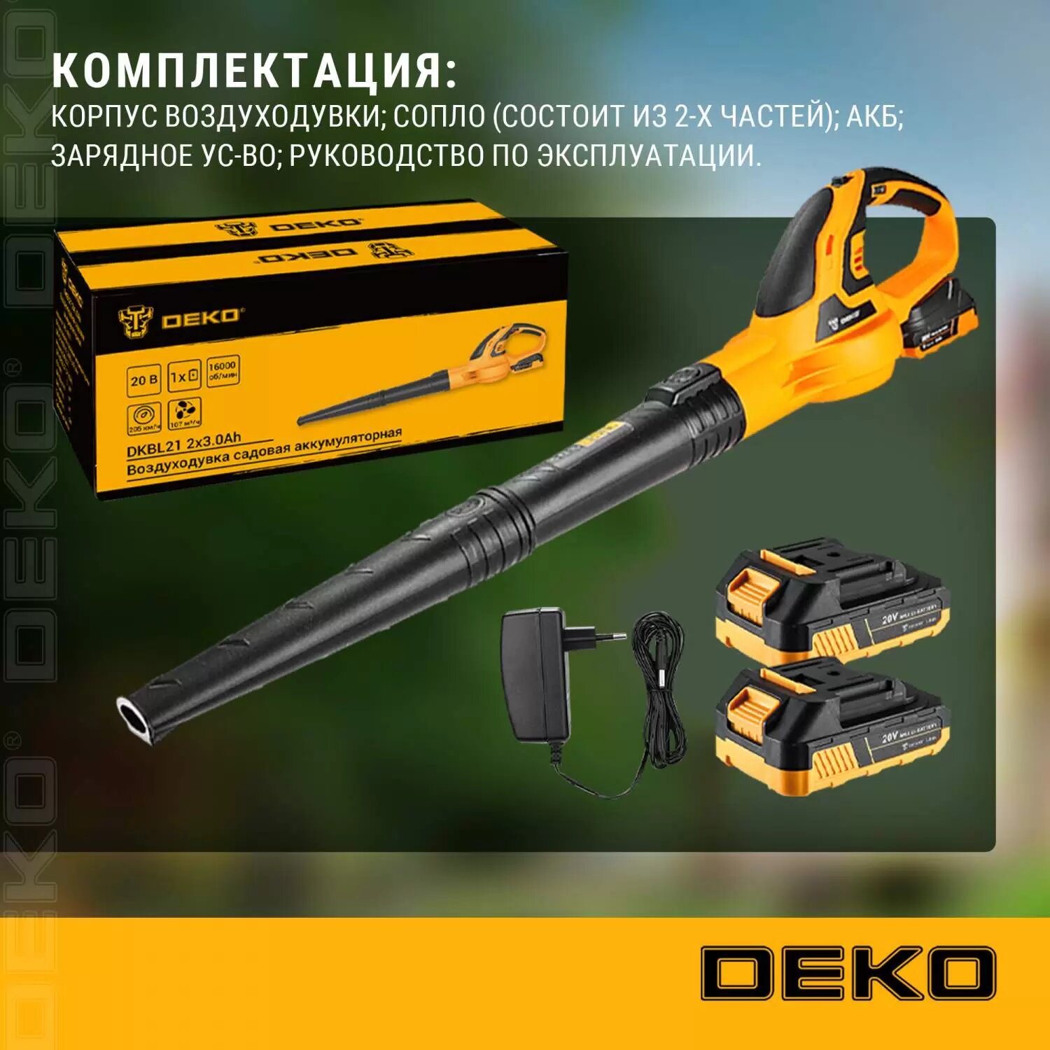 Воздуходувка садовая аккумуляторная Deko DKBL21, 20 В, 2x4.0 Ач, черно-желтый (063-4361)