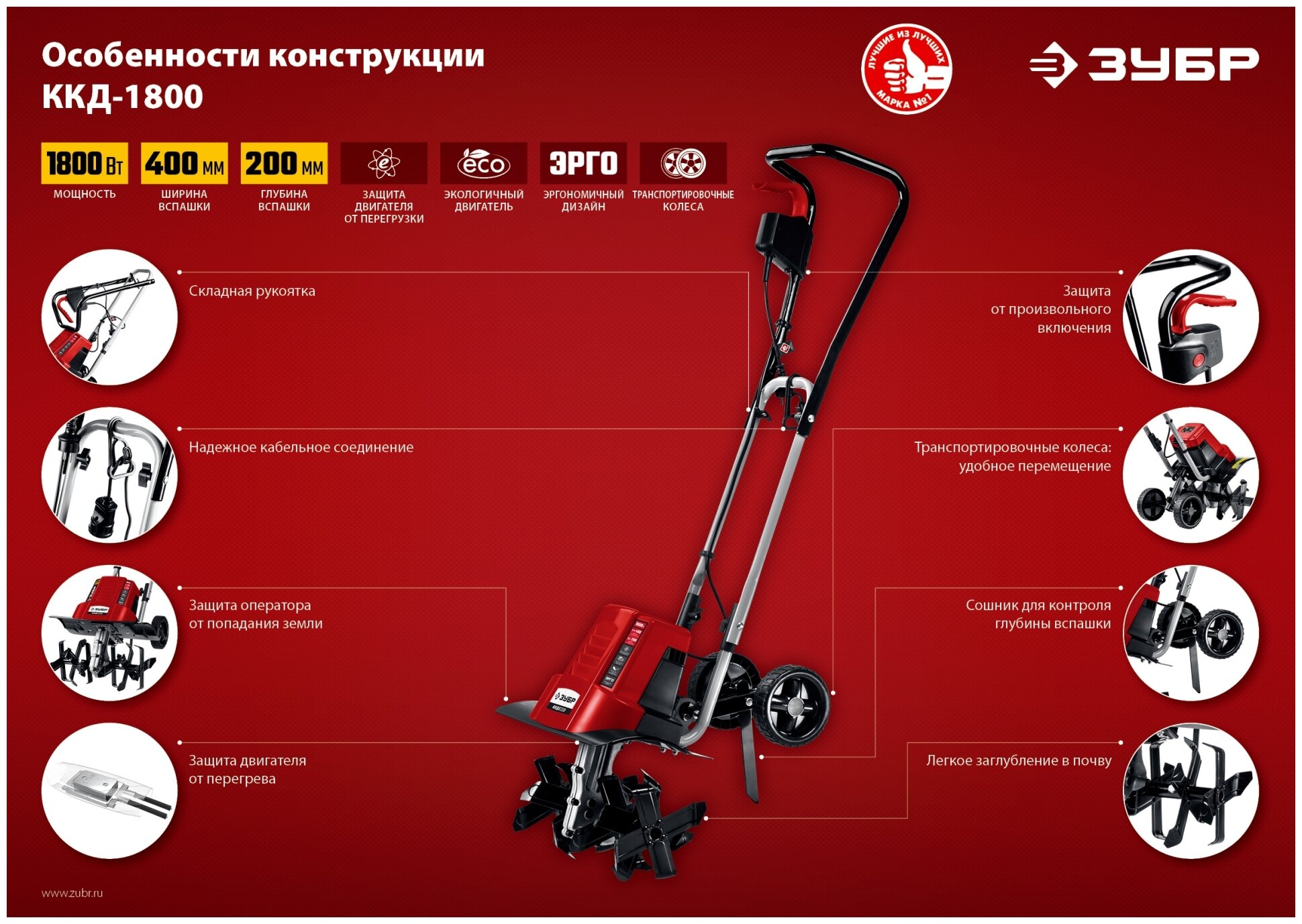 СохранитьКультиватор электрический Зубр ККД-1800, 1.8кВт интересное: