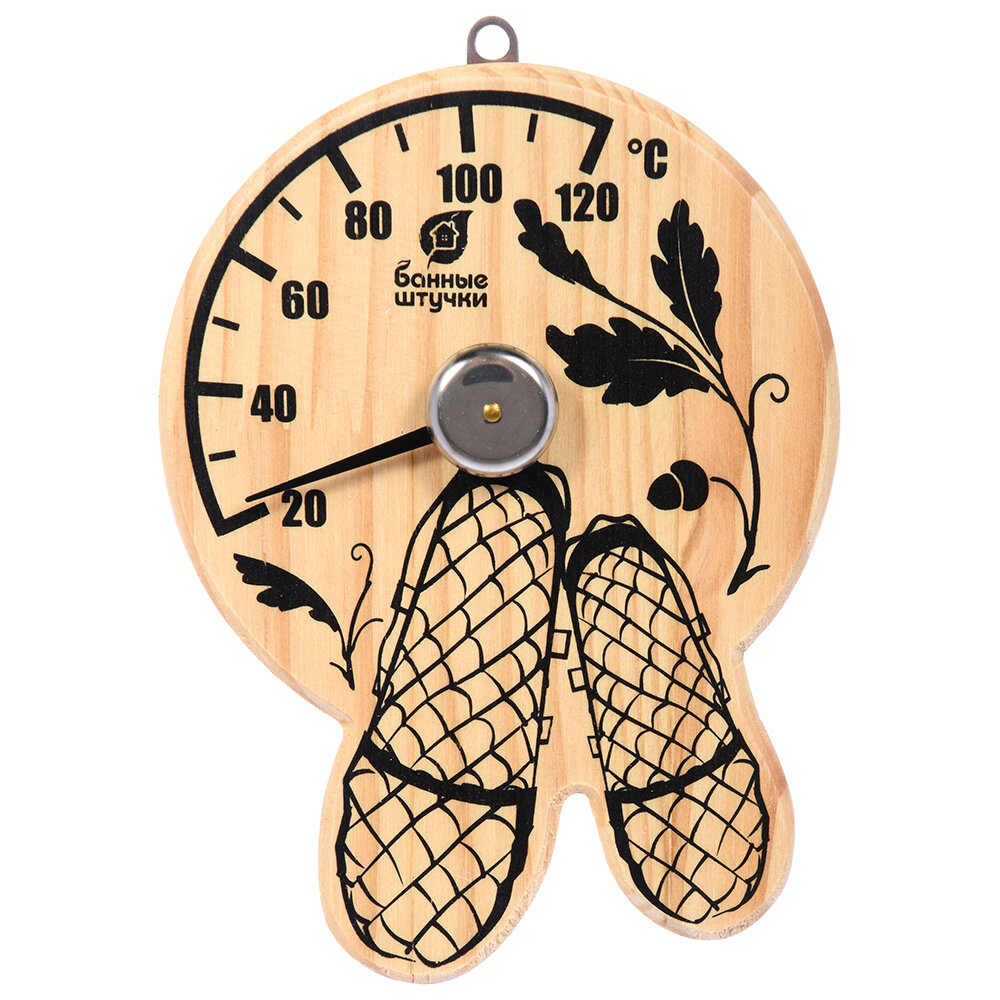 Термометр "Лапти" для бани и сауны "Банные штучки" дерево/комнатный/настенный/с рисунком