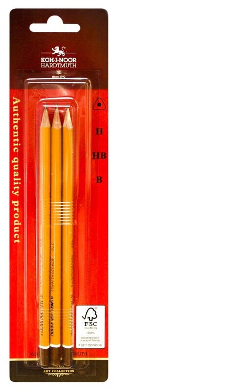 СохранитьKoh-I-Noor Набор карандашей чернографитных разной твердости 3 штуки Koh-I-Noor 1580 ART, B, H, HB, в блистере интересное: