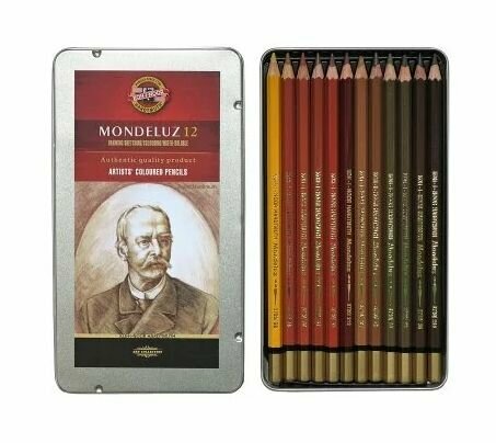 Koh-I-Noor Карандаши акварельные Koh-I-Noor Mondeluz 3722 BRAUN LINE 12 цветов, металлический короб, блистер