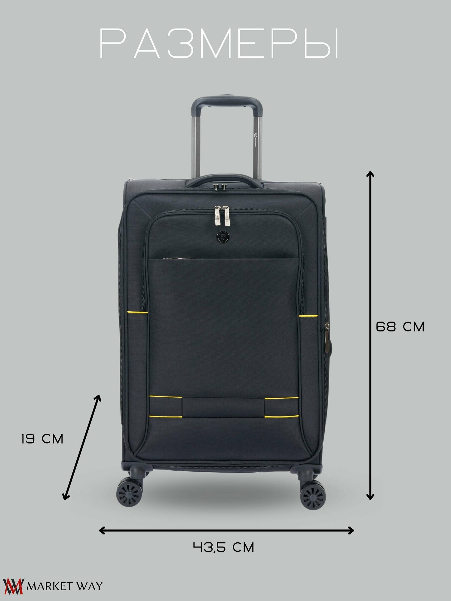 Чемодан Torber Brosno, чёрный, 43,5 х 19 х 68 см, 56 л