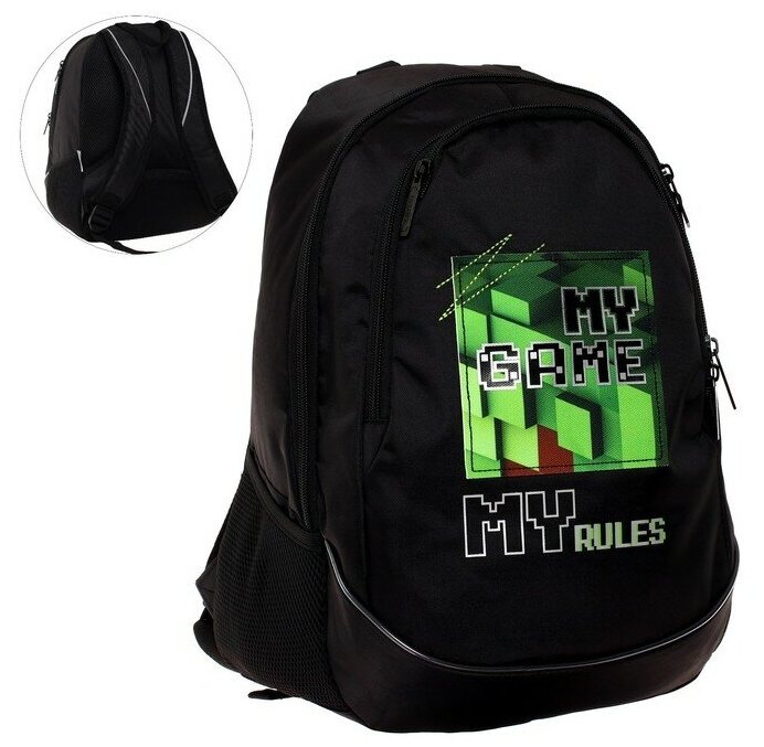 Рюкзак школьный 42 х 30 х 20 см, эргономичная спинка, Hatber Sreet, Pixels, чёрный/зелёный NRk_78121