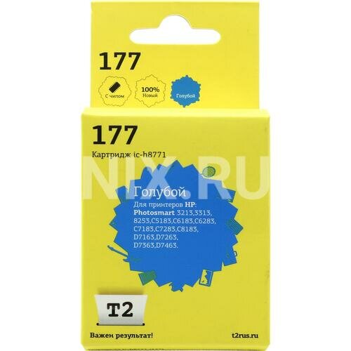 Купить T2 Расходные материалы C8771HE Картридж 177 для HP Photosmart 3213 8253 C5183 C6183 D7163 D7463, голубой, С чипом, 350 стр.