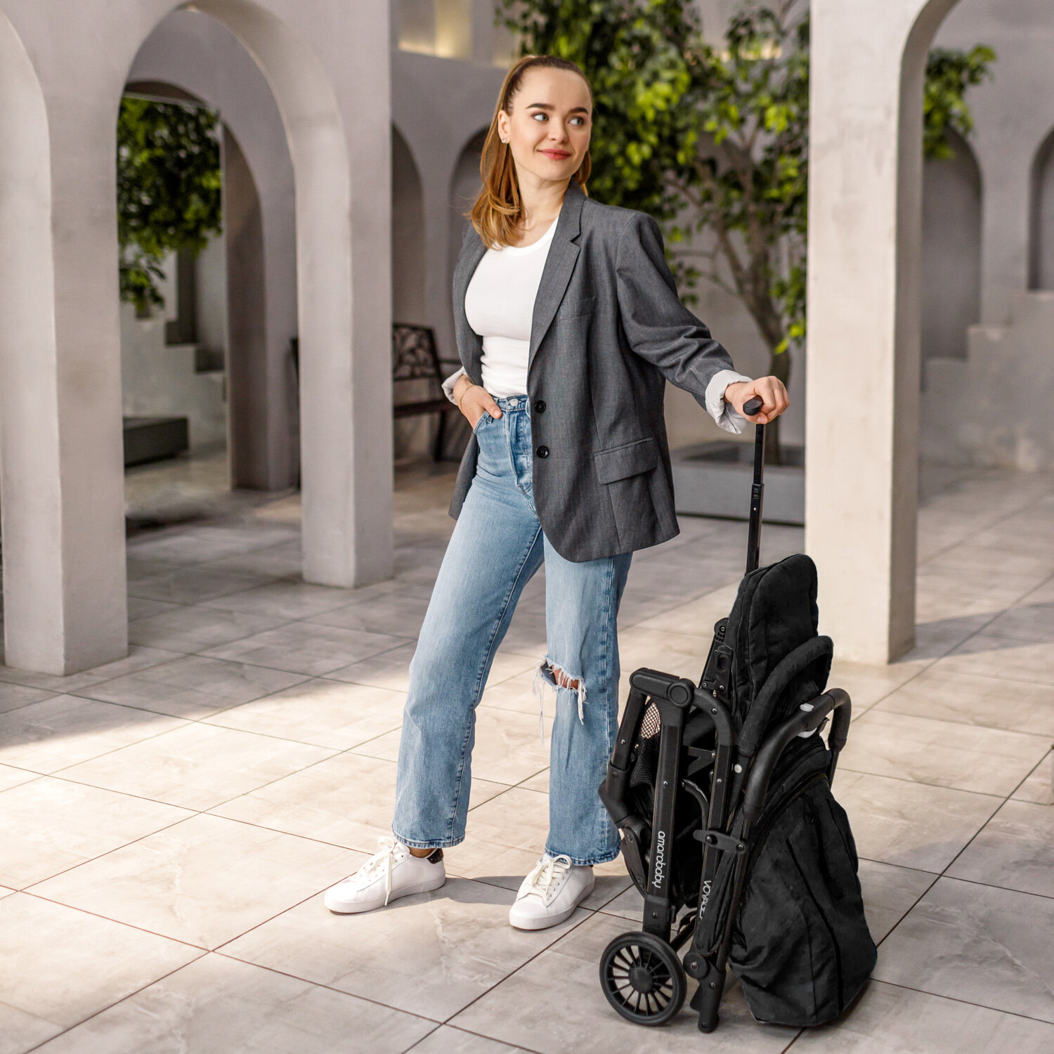Прогулочная коляска Amarobaby Voyager, серый