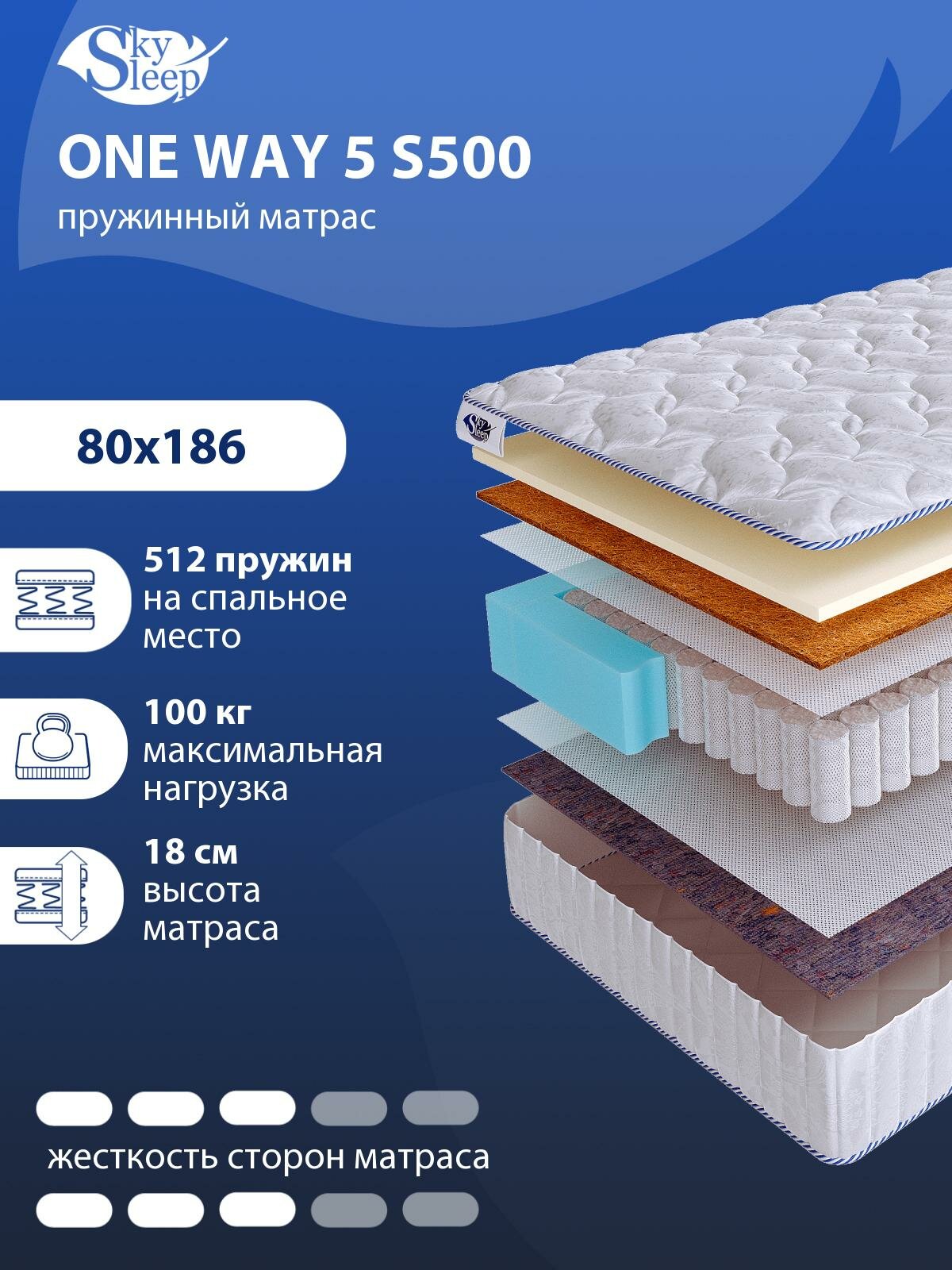 Односторонний ортопедический матрас SkySleep ONE WAY 5 S500 на кровать 180x186