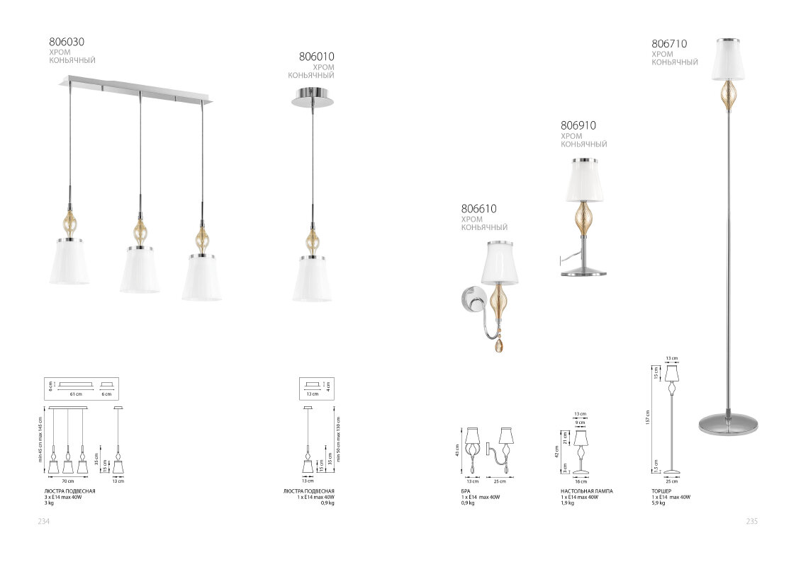Подвес 806010 ESCICA 1х40W E14 белый/коньяк/хром