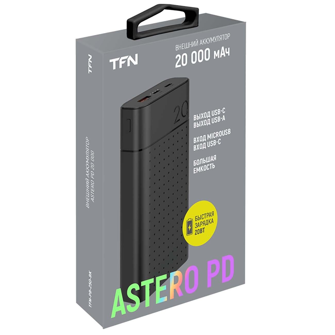 | Комплектация | Внешний аккумулятор на 20000 mAh / TFN Astero 20 PD / чер(TFN,TFN- PB-250-BK) |