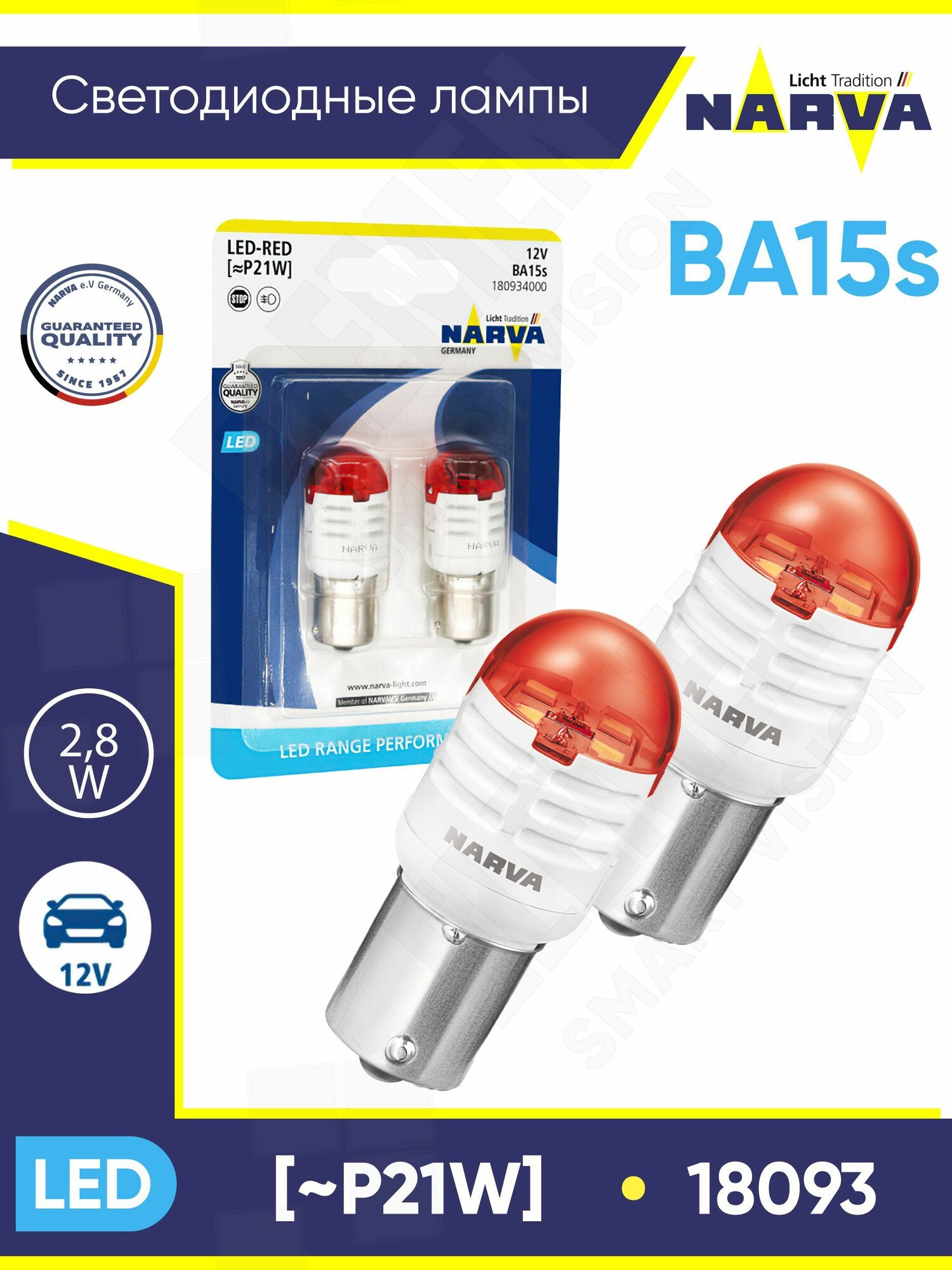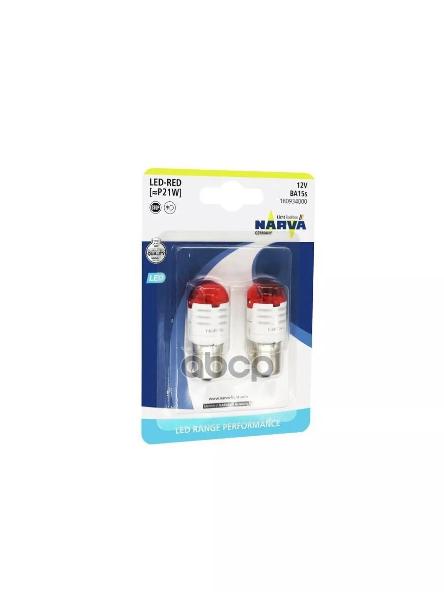NARVA 180934000 Лампа LED P21W 12V 1,75W BA15s red (блистер 2шт.)