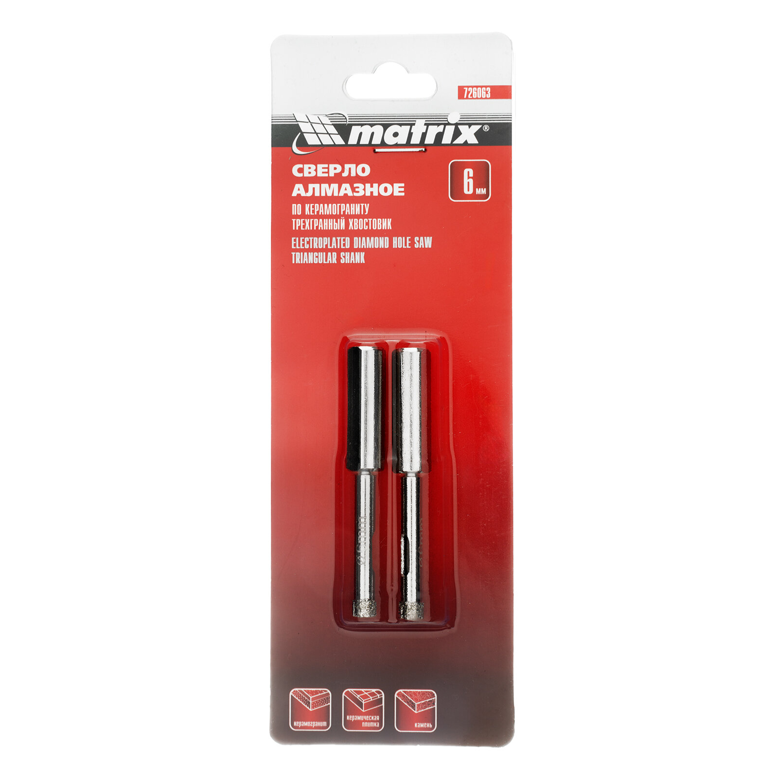 Купить Сверло алмазное по керамограниту Matrix 6 х 67 мм, 3-гранный хвостовик 2 шт 726063