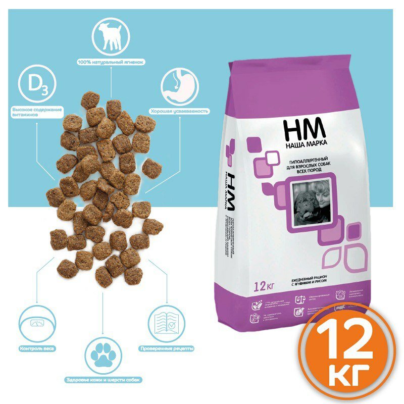 Корм сухой "Наша Марка" гипоаллергенный, для взрослых собак, с мясом ягненка и рисом, 12 кг