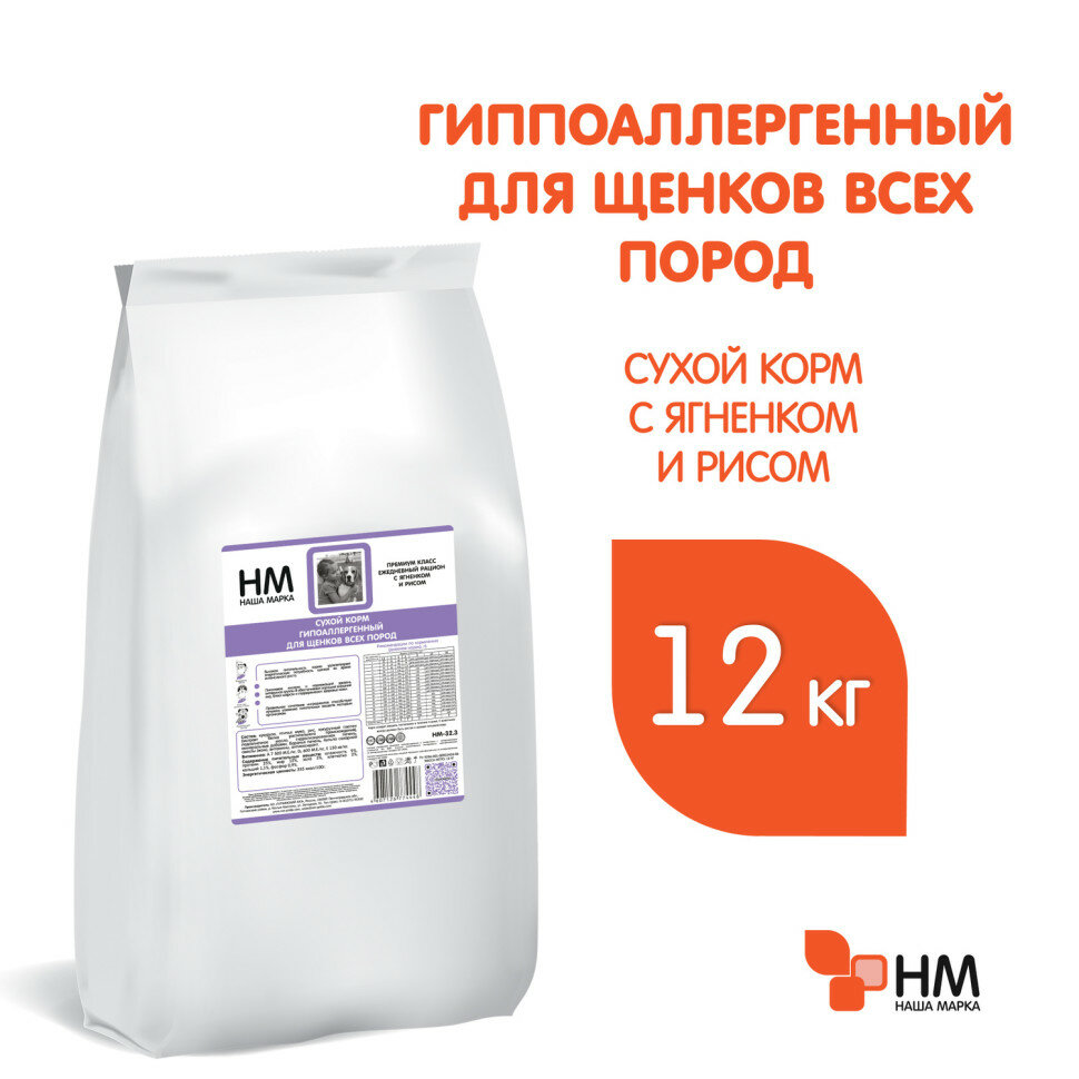 Наша Марка 12кг ягненок/рис сухой корм для щенков, гипоаллергенный (774448)