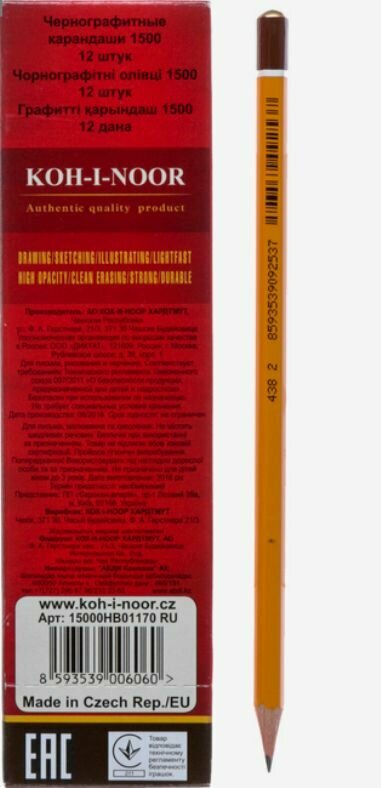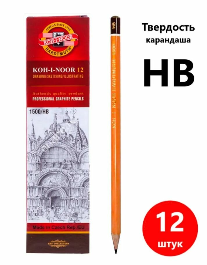 Карандаш ч/г Koh-I-Noor "1500" HB, заточен., упаковка 12 шт. интересное: