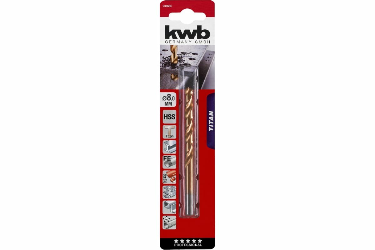 Купить KWB сверло ПО МЕТ. HSS 8,0 ММ TITAN 238-680