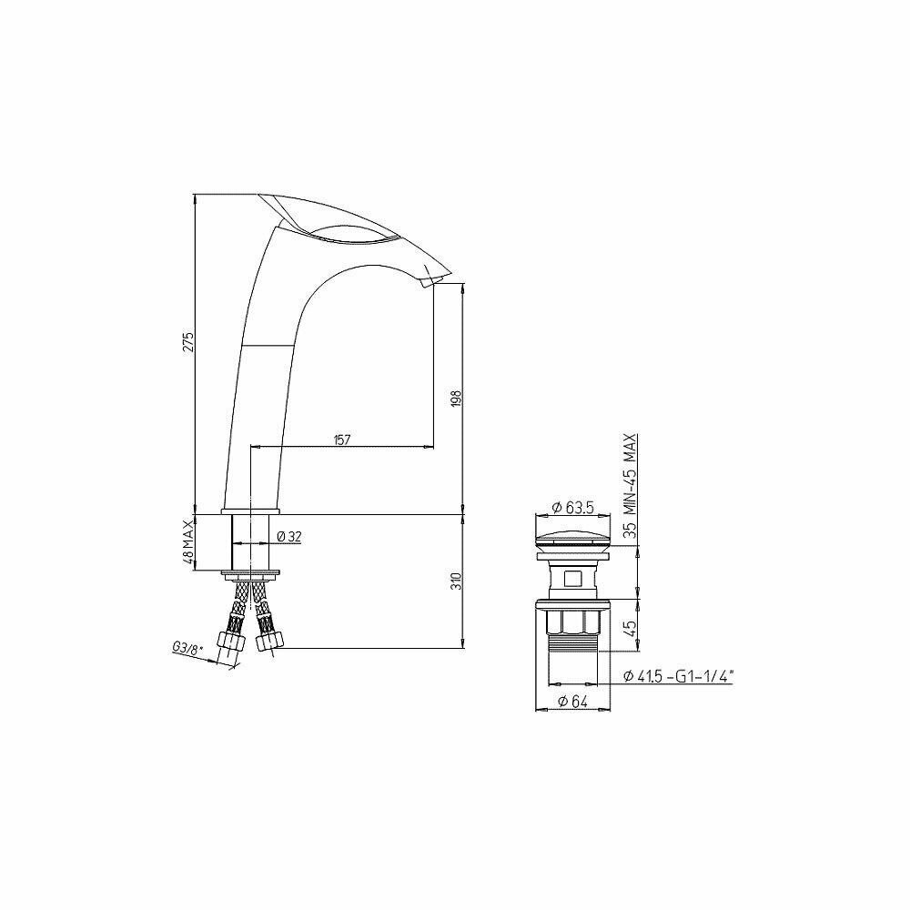 Смеситель для умывальника Paini F1, арт. F1CR211LL2SSSRKM, неповоротный излив, с донным клапаном, высота 275 мм