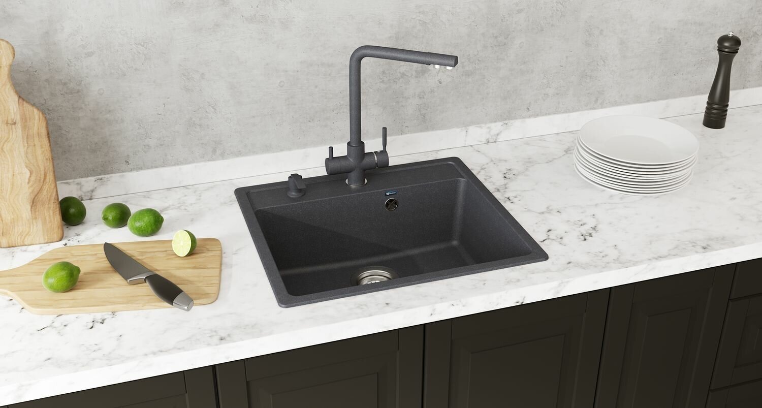 Смеситель для кухни с подключением к фильтру Ulgran антрацит U-016-343