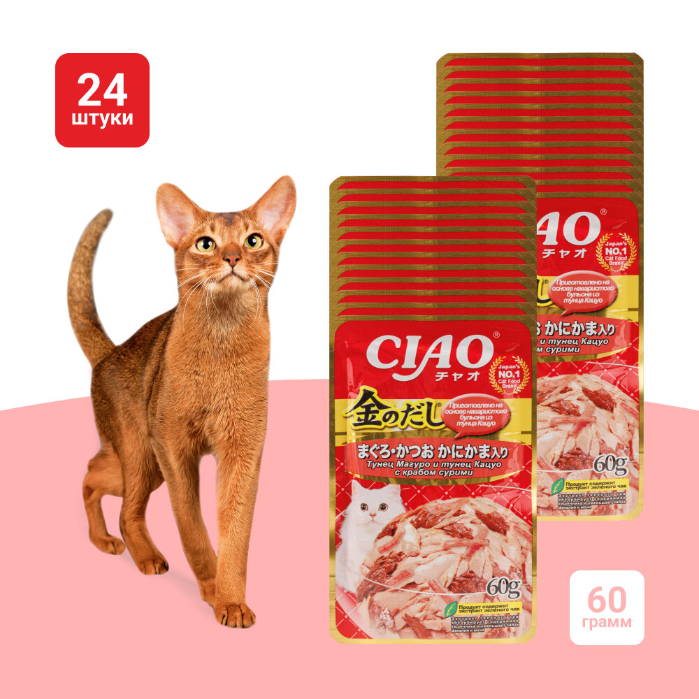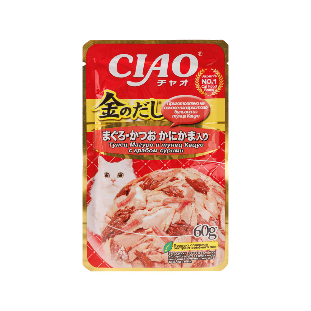Влажный корм для кошек Ciao Kinnodashi Тунец Магуро и тунец Кацуо с крабом сурими 60г х 8шт.