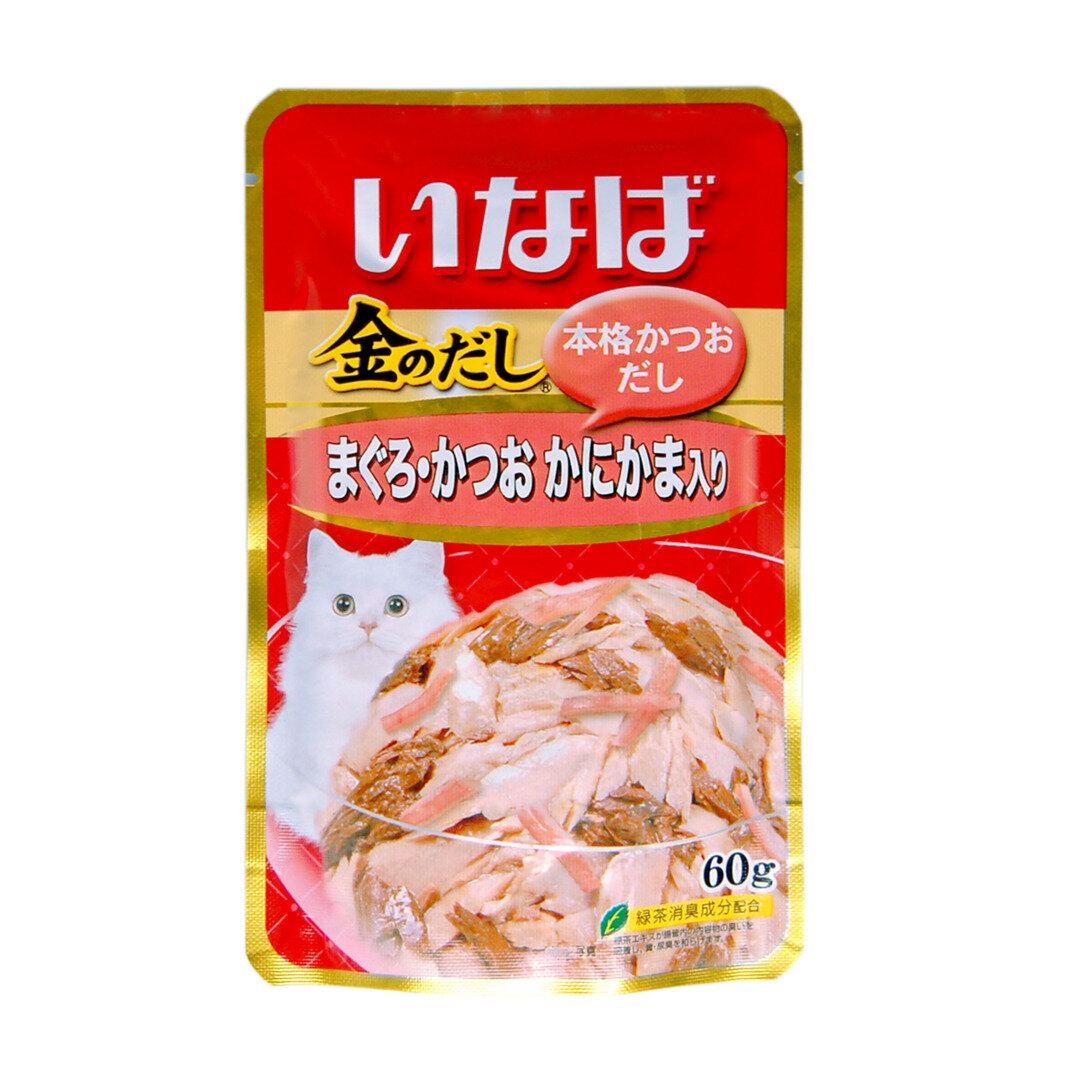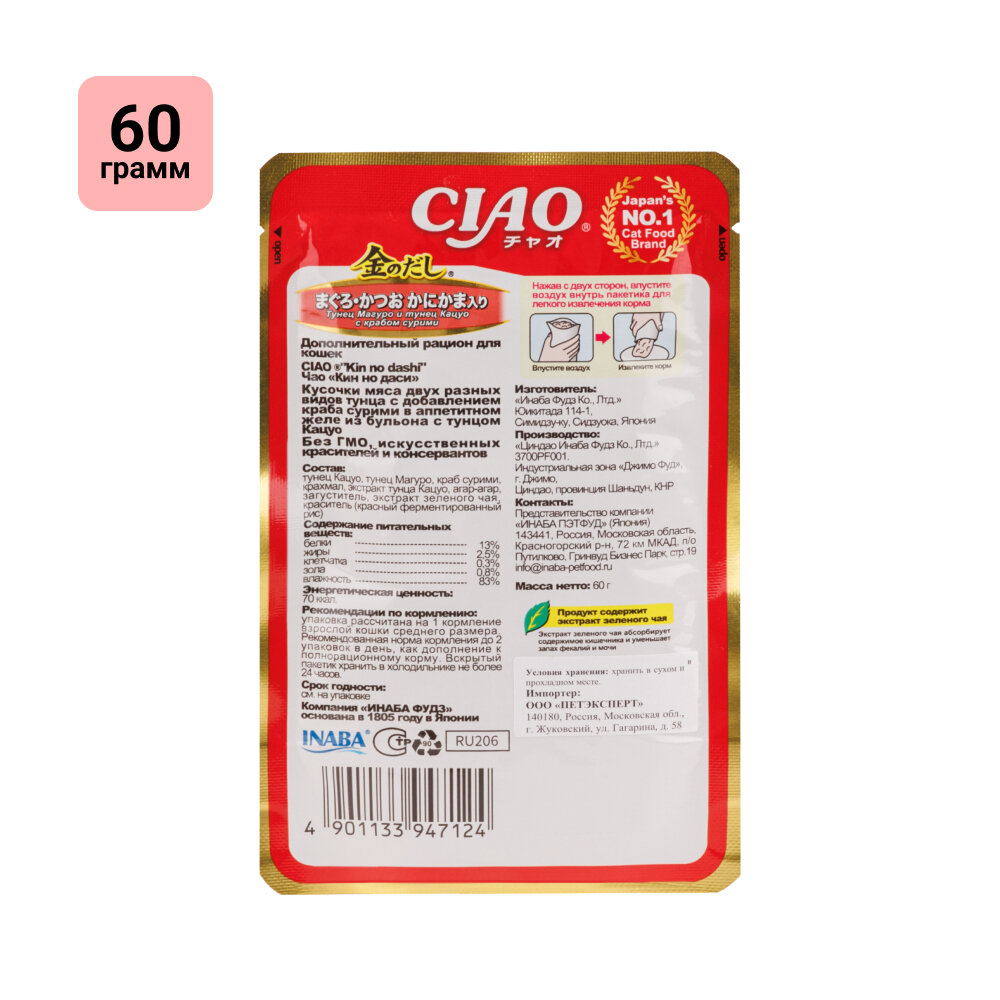 INABA CIAO KINNODASHI для взрослых кошек с тунцом Магуро, тунцом Кацуо и крабом сурими (60 гр х 12 шт)